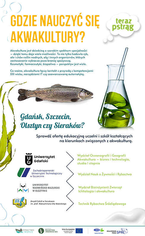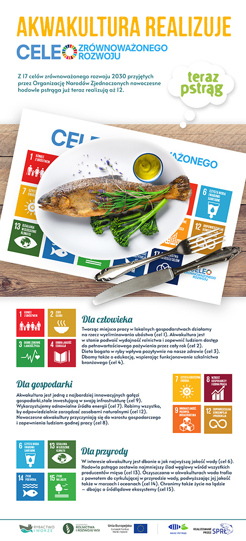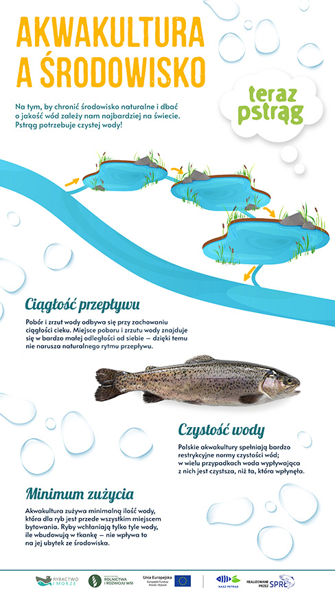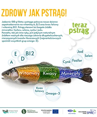 Akcja promocyjna Teraz Pstrąg jest inicjatywą Stowarzyszenia Producentów Ryb Łososiowatych, mającą na celu promocję pstrąga w Polsce. Poprzez szeroko zakrojoną kampanię reklamową chcemy dotrzeć do jak najszerszego grona odbiorców z przekazem, który ma zachęcić do pstrąga jako ryby zdrowej, hodowanej w czystych wodach i „wdzięcznej“ kulinarnie.Operacja współfinansowana jest przez Unię Europejską ze środków finansowych Europejskiego Funduszu Morskiego i Rybackiego.Naszym celem jest edukacja społeczeństwa polskiego o walorach pstrąga, jego wpływie na zdrowie, urodę, rozwój dzieci, ale też informacja jak kreatywnie i ciekawie wykorzystać pstrąga w swoim menu.W ramach akcji prowadzone były działania reklamowe w telewizji, na nośnikach reklamy zewnętrznej, w internecie i w prasie. Strona, na której Państwo obecnie się znajdują, jest platformą komunikacji i kompendium wiedzy o pstrągu dla wszystkich tych, którzy chcą ten temat poznać bliżej.Serdecznie zapraszamy do jej zwiedzania i zachęcamy do konsumpcji pstrąga, bo pstrąg to naprawdę pyszna sztuka.